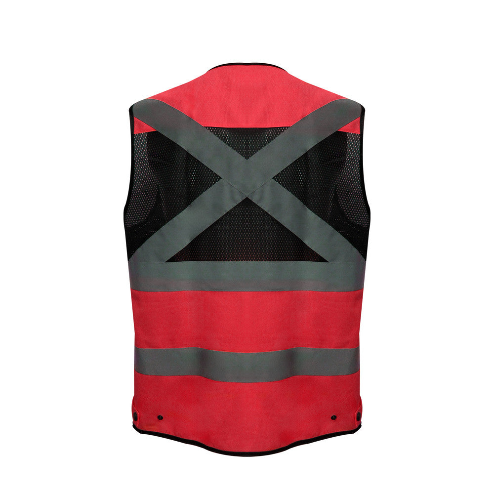 - Chaleco con cintas reflectantes de alta visibilidad en 360°.