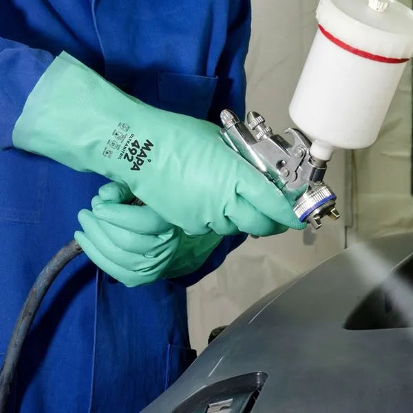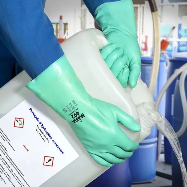 Guantes de nitrilo que dan destreza y comodidad, gracias a la forma anatómica y a la calidad del flocado. Duración de vida superior: excelente resistencia mecánica (abrasión, perforación). Para uso en industria automovilística/mecánica (tratamiento/desengrasado de metales con disolventes, mecanizado de piezas utilizando aceite de corte), industria de la construcción (carpintería/ebanistería),industria de la construcción (albañilería/enyesado), industria de la construcción (albañilería/enyesado),ayuntamientos (Parques y espacios públicos).
